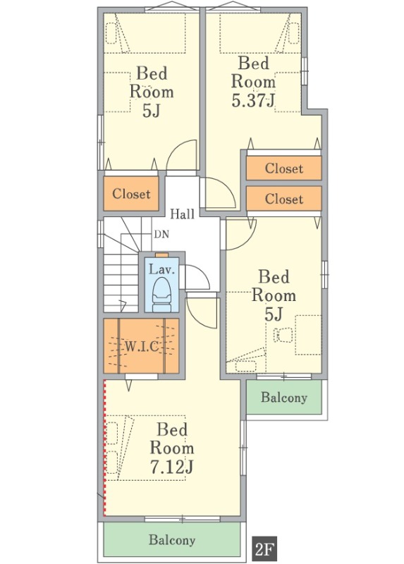 間取り/間取り詳細 4LDK  LDK19.25帖 / 洋室7.12帖 / 洋室5.37帖 / 洋室5帖 / 洋室5帖 築年月 2025年9月
