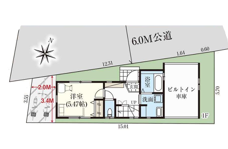 接道1 北側 公道 幅員6.0m