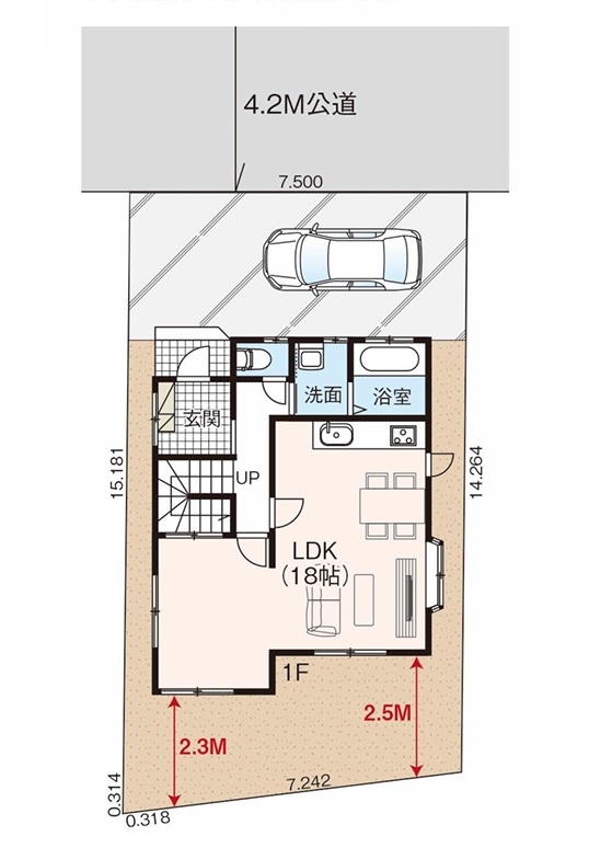 接道1 北西側 公道 幅員4.2m