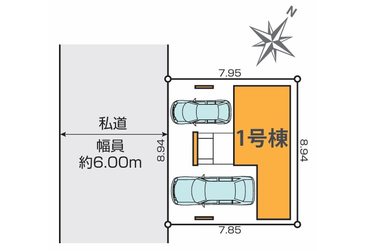 | 接道1 | 南西側 私道 幅員6.0m | ||