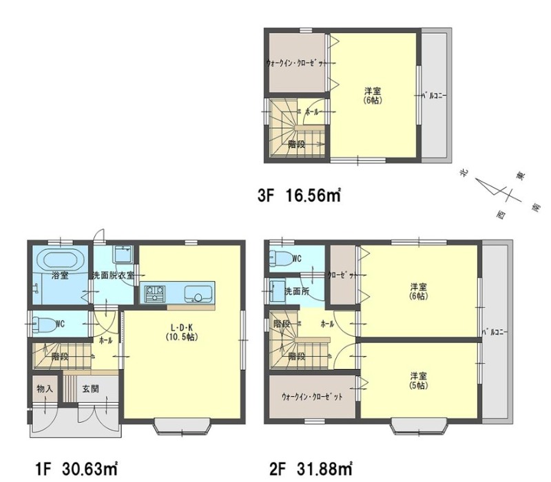 | 建物面積/土地面積 | 79.07㎡/57.33㎡ | 階数 | 地上3階 |