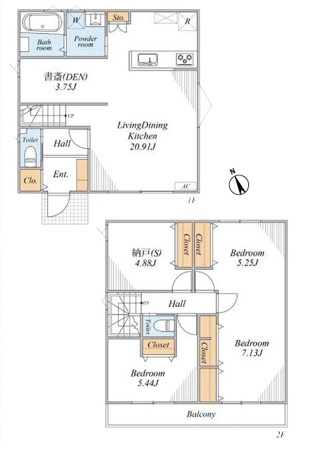 | 間取り/間取り詳細 | 2SLDK / LDK20.9帖 / 洋室12.38帖 / 洋室5.44帖 / S4.88帖 / その他3.75帖 | ||