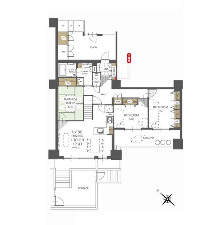 間取り/間取り詳細 3LDK / LDK17.4帖 / 洋室7.0帖 / 洋室6.0帖 / 和室6.0帖