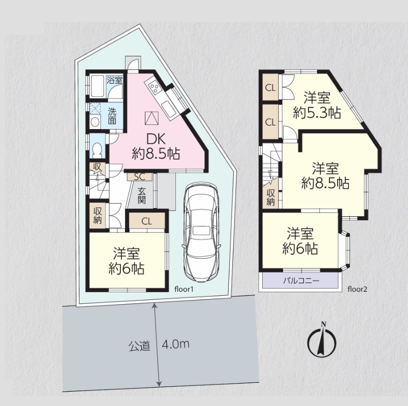 間取り/間取り詳細 4DK / DK8.5帖 / 洋室6.0帖 / 洋室8.5帖 / 洋室6帖 / 洋室5.3帖
