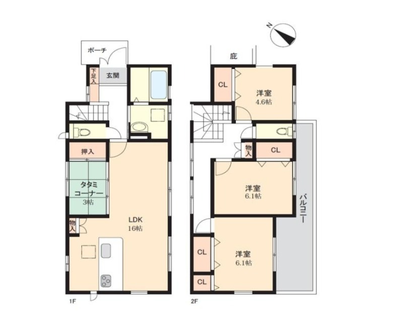 | 間取り/間取り詳細 | 4LDK / LDK16帖 / 和室3帖 / 洋室6.1帖 / 洋室6.1帖 / 洋室4.6帖 | ||